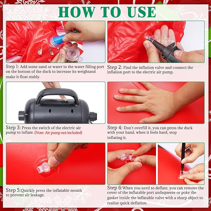 - Comprehensive Decoration Package: this Christmas decoration package includes 1 inflatable Christmas Santa duck, 4 tinsel garlands, 2 tinsel streamers, a pleated fan flag, and a roll of rope, you're equipped for any Christmas gathering