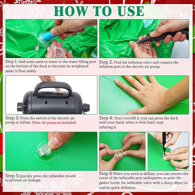 - Sizes for Diverse Spaces: our Christmas tree duck decorations offer a range of sizes to fit any space, whether it's around your yard or in a parade; The inflatable Christmas tree duck measures about 3.5 x 3.67 ft, making it a standout piece, while the tinsel garland and streamers add subtle elegance; Transform any area into a festive celebration zone effortlessly