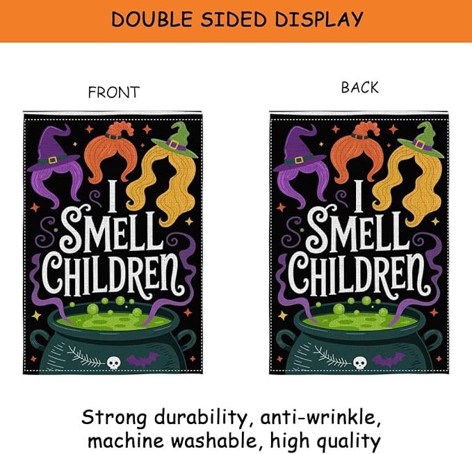 HTBIG Halloween Decor Garden Flag, I Smell Children Halloween Garden Flag Decor, Yard Flags for Outside 12x18 inch, Outside Yard for Home Decorations