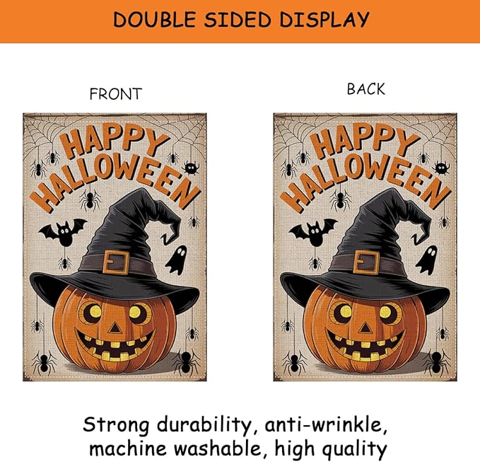 HTBIG Halloween Pumpkin Garden Flags, Happy Halloween Spooky Pumpkin Decor, Yard Flags for Outside 12x18 inch, Outside Yard for Home Decorations