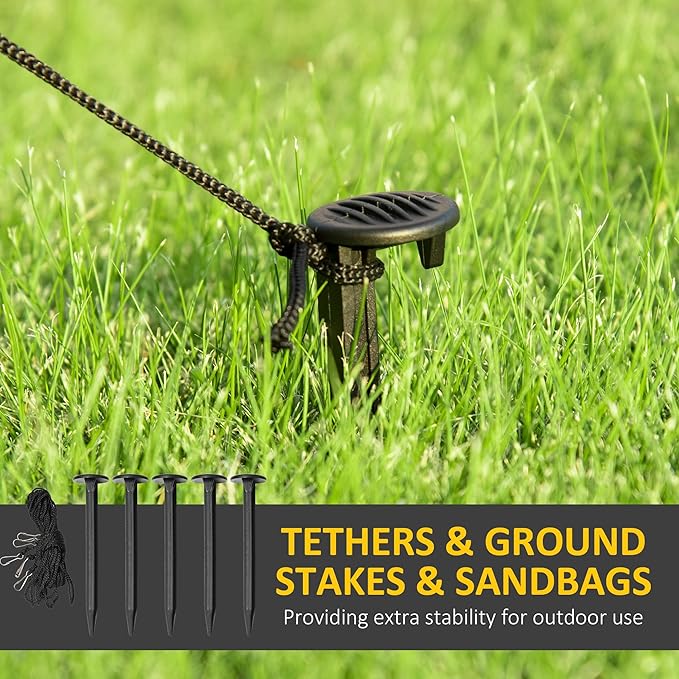 - [Weather-Resistant Design] Don't let mild wind or rain ruin your frightful fun! Our inflatable Halloween decoration comes equipped with five stakes, three drawstrings, and four sandbags, ensuring it remains grounded during unpredictable weather. It's perfect for all outdoor Halloween decor needs.